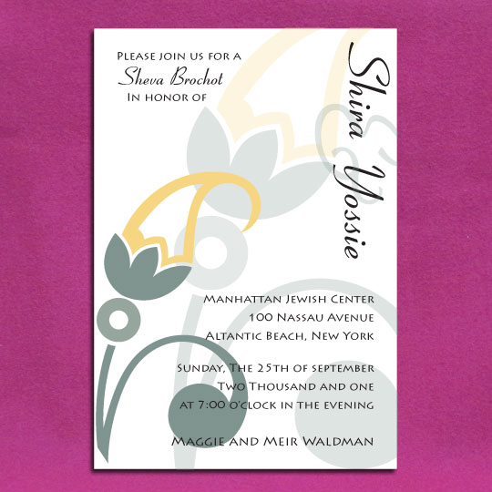 This is a Jewish Hebrew English Sheva Brochos Invitation just for you. You could take the invitation as what we show or design your own. Please be specific when ordering.