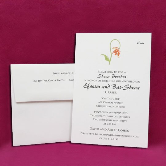 Consider this beautiful photo card for your exciting simcha as you plan for Sheva Brochot. Use it as shown or suggest a design of your own. We will be happy to make the adjustment and send you a proof.