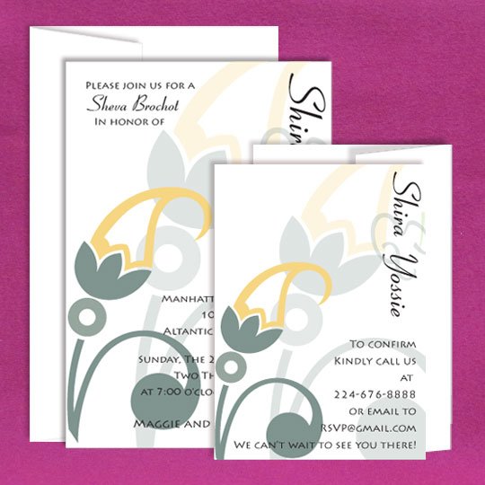 This is a Jewish Hebrew English Sheva Brochos Invitation just for you. You could take the invitation as what we show or design your own. Please be specific when ordering.