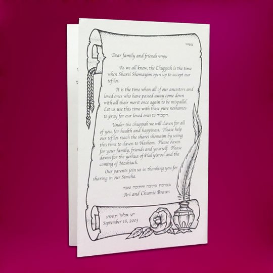 Home » All Occasions » Wedding Programs » Vellum Chupah Tefillah