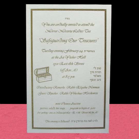 When inviting distinguished guests to your dinner or luncheon event, choose this classic creation. If you’d like, add some Hebrew to throw in a traditional flavor and bring your event to the next level.