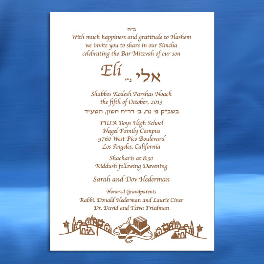 Home » Bar Mitzvah Invitations » Low Cost Bar Mitzvah Invitations » Jerusalem Tfillin Card