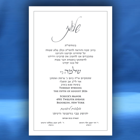 Both the Hebrew font choices and the English font choices have separate categories for selecting a font. One category is for the general text and one category is for selecting a font for your son’s name. This way you can be truly creative in setting a personal touch to your Bar Mitzvah invitation. Alternatively, you can request that we select the perfect fonts for you.
