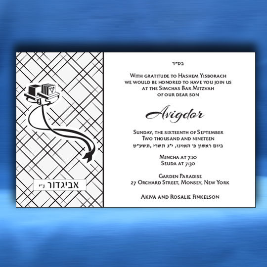 Both the Hebrew font choices and the English font choices have separate categories for selecting a font. One category is for the general text and one category is for selecting a font for your son’s name. This way you can be truly creative in setting a personal touch to your Bar Mitzvah invitation. Alternatively, you can request that we select the perfect fonts for you.