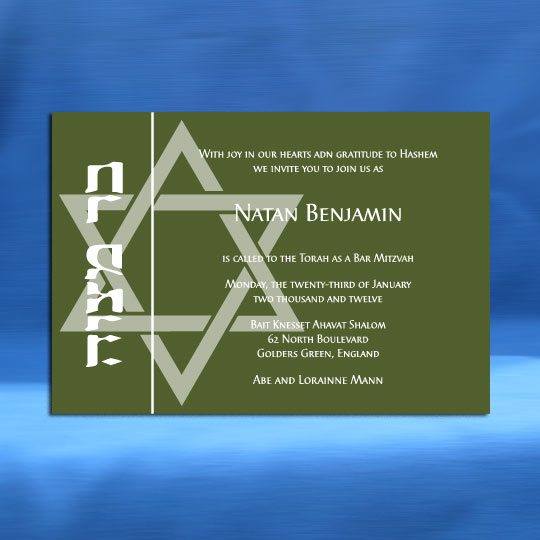 Both the Hebrew font choices and the English font choices have separate categories for selecting a font. One category is for the general text and one category is for selecting a font for your son’s name. This way you can be truly creative in setting a personal touch to your Bar Mitzvah invitation. Alternatively, you can request that we select the perfect fonts for you.