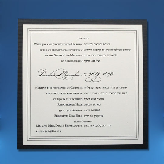 Both the Hebrew font choices and the English font choices have separate categories for selecting a font. One category is for the general text and one category is for selecting a font for your son’s name. This way you can be truly creative in setting a personal touch to your Bar Mitzvah invitation. Alternatively, you can request that we select the perfect fonts for you.