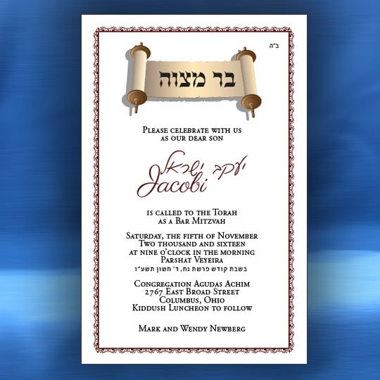 Both the Hebrew font choices and the English font choices have separate categories for selecting a font. One category is for the general text and one category is for selecting a font for your son’s name. This way you can be truly creative in setting a personal touch to your Bar Mitzvah invitation. Alternatively, you can request that we select the perfect fonts for you.