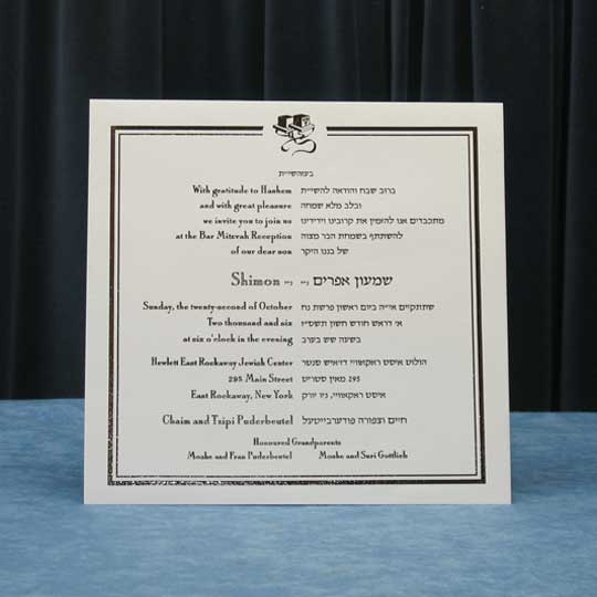Both the Hebrew font choices and the English font choices have separate categories for selecting a font. One category is for the general text and one category is for selecting a font for your son’s name. This way you can be truly creative in setting a personal touch to your Bar Mitzvah invitation. Alternatively, you can request that we select the perfect fonts for you.