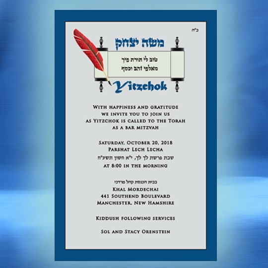 Both the Hebrew font choices and the English font choices have separate categories for selecting a font. One category is for the general text and one category is for selecting a font for your son’s name. This way you can be truly creative in setting  a personal touch to your Bar Mitzvah invitation. Alternatively, you can request that we select the perfect fonts for you.