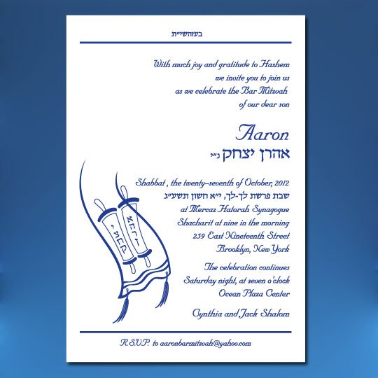 Both the Hebrew font choices and the English font choices have separate categories for selecting a font. One category is for the general text and one category is for selecting a font for your son’s name. This way you can be truly creative in setting a personal touch to your Bar Mitzvah invitation. Alternatively, you can request that we select the perfect fonts for you.