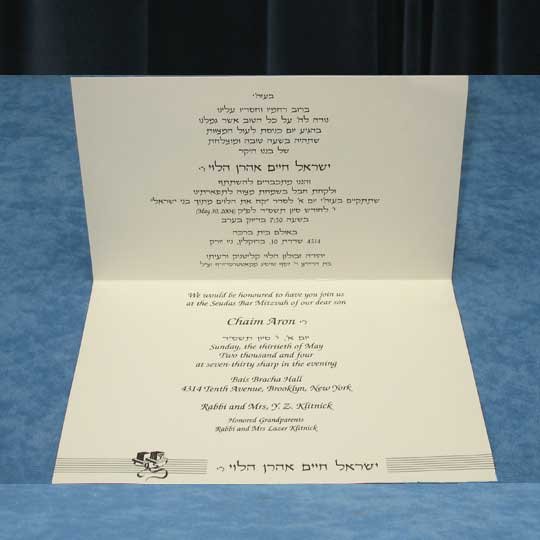 The brilliance of the Mock Cover is that you get the feel of an invitation with a printed cover for a bargain price. Bar Mitzvah invitations