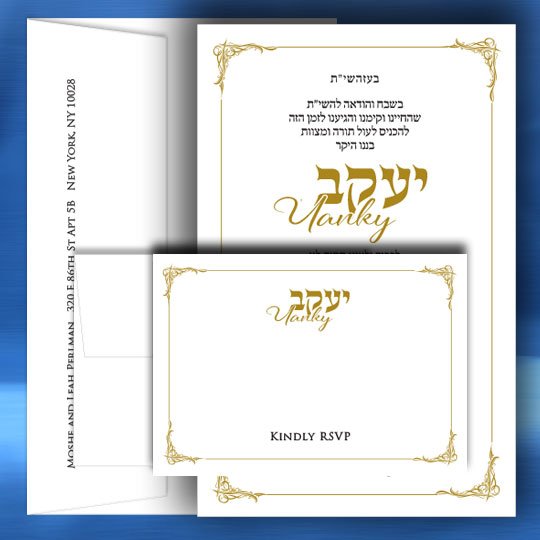 Home Bar Mitzvah Invitation Gold Corner Border