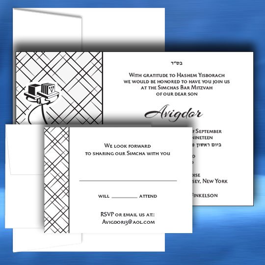 All the room you need in one of our newly designed Bar Mitzvah invitations. Specially created for us by our talented designers.