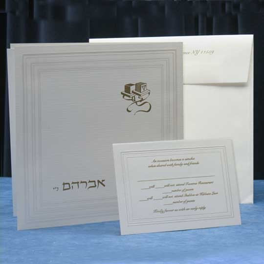 One of our most exclusive designs.This all time classic border is sure to be a winner and is affordable too. Priced without insert. Please check availability before ordering. Bar Mitzvah invitations