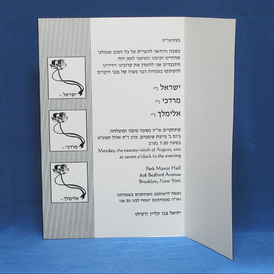 The brilliance of the Mock Cover is that you get the feel of an invitation with a printed cover for a bargain price. Bar Mitzvah invitations