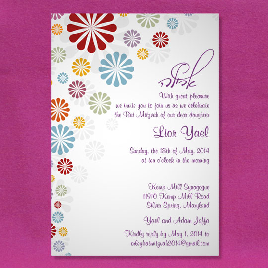 Rich in color and style. Definitely up-do- date. A winning choice for your Bat Mitzvah invitations.