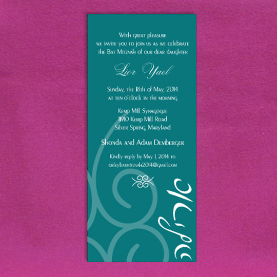 Both the Hebrew font choices and the English font choices have separate categories for selecting a font. One category is for selecting a font for the general text and one category is for selecting a font for the name. This way you can be truly creative in setting a personal touch to your invitation. Alternatively, you can request that we select the perfect fonts for you.