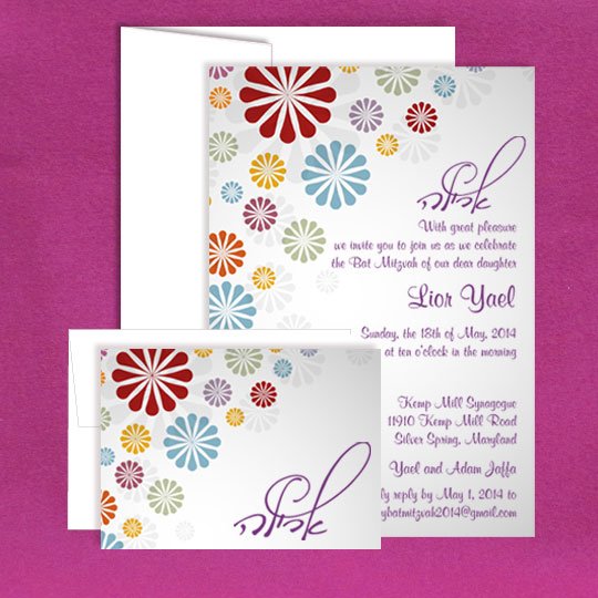 Rich in color and style. Definitely up-do- date. A winning choice for your Bat Mitzvah invitations.
