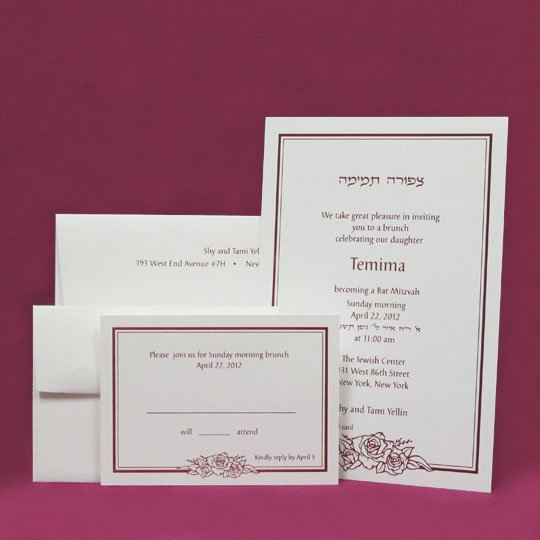 Home Bat Mitzvah Invitation Flower Border Card