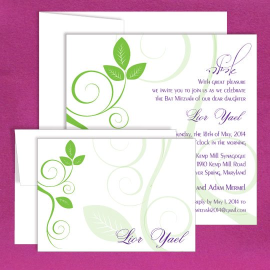 This is a new, neat and popular design. With this no- fail design you’re sure to have your Bat Mitzvah invitations stand out.
