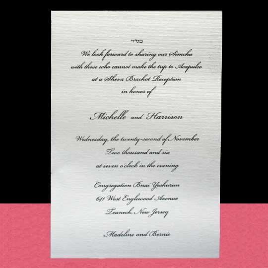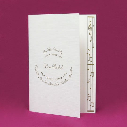 This Hebrew English invitation demonstrates a melodious blend of fonts and layouts. Alternative design options available. The extra border edge gives it a tuneful twist, a definite ‘harmonious’ choice!