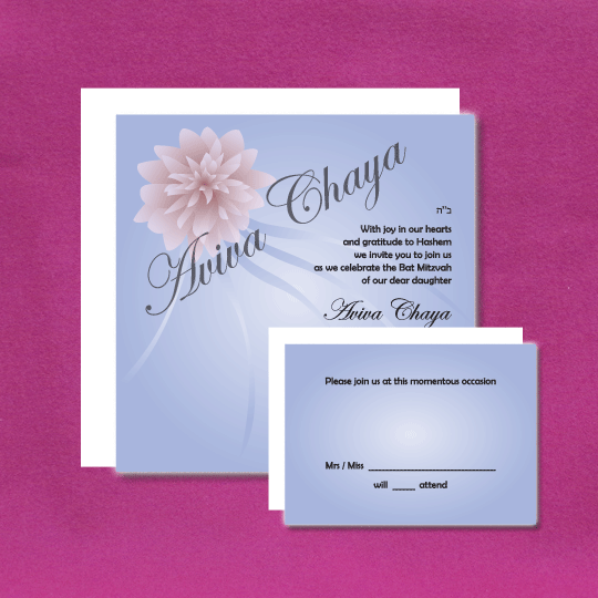 Enhance the beauty of the moment with this streaming softness. Lovely in every way. Let the dreamlike feel your Bat Mitzvah invitations lead the way!