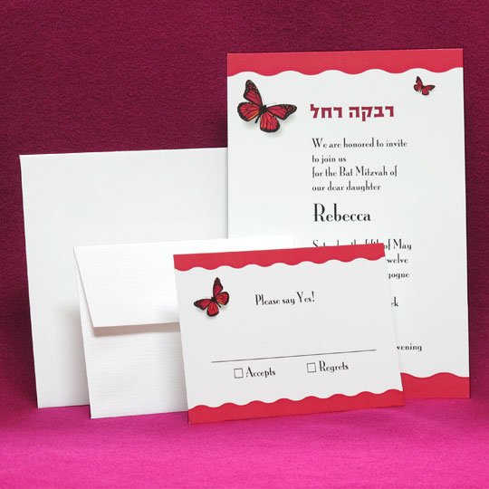 We supply the butterflies and you supply the sunshine! A warm and inviting concept for your Bat Mitzvah invitations.