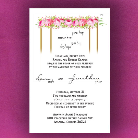Color adds the perfect charm when printing your Jewish wedding invitations. This one’s a true beauty and a perfect choice to ring in the excitement of the big moment to come.