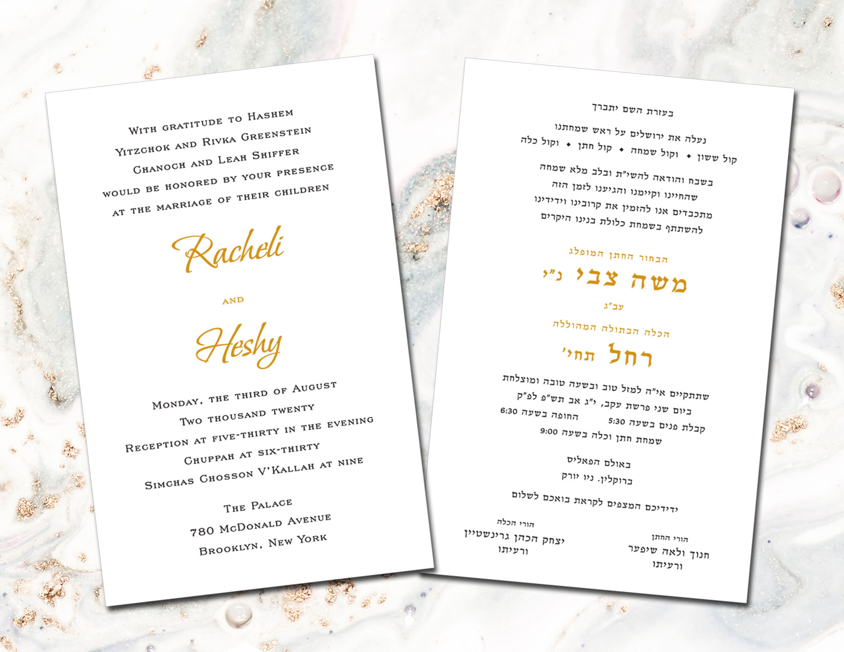 Enhance the moment with these beautiful mettalic flowing waves as your Jewish wedding invitations background.