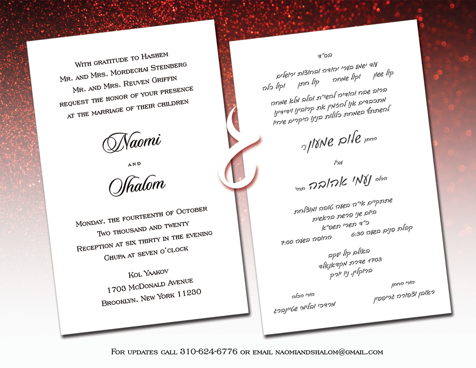 When looking for Jewish wedding E-invitations the sky’s the limit in design. Feel free to check out our choices or to make a suggestion of your own.