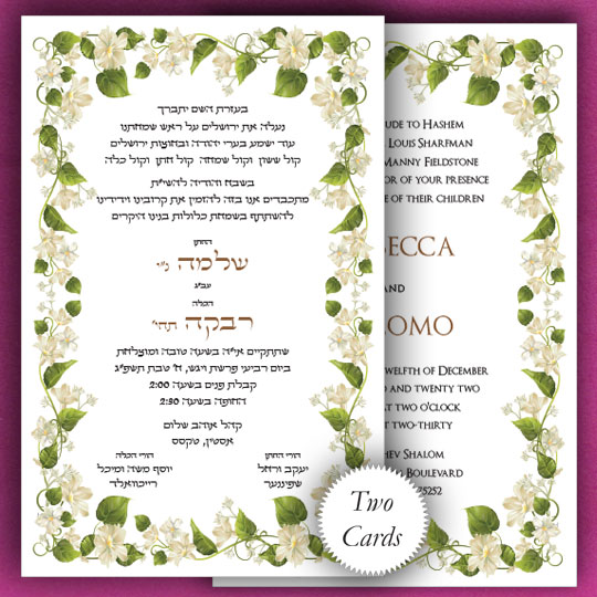 Thinking of a Garden wedding? Or just love the feeling of flowers blooming for your Jewish wedding invitations? Feel free to use as shown or to add more Hebrew text.