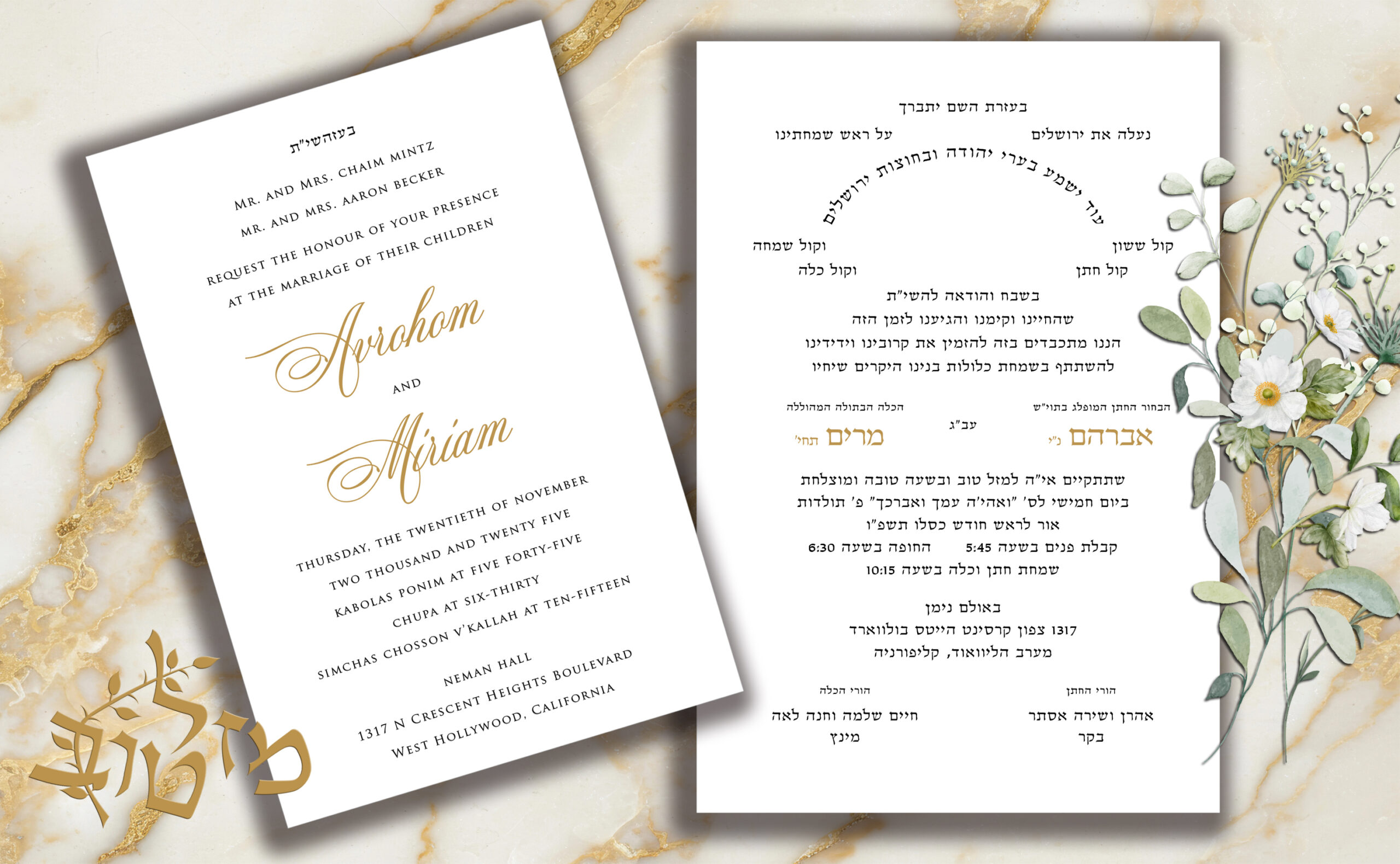 This beautiful new digital design is our pride and joy amongst our E-invitation Jewish Wedding invitations selection. Feel free to use this design as shown or suggest alternative concepts of your own.