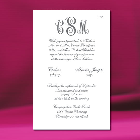 One of our most traditional designs this has all the info you need plus your names and the date in hebrew. Jewish wedding invitations