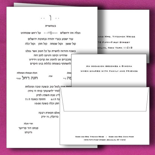 Enhance your invitation with the new trend of icons and create a truly up-to- date design. Jewish Hebrew wedding invitations