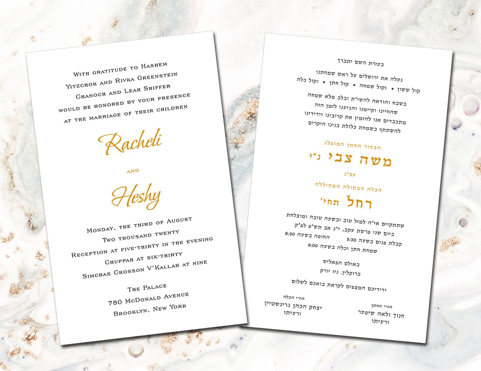 Enhance the moment with these beautiful mettalic flowing waves as your Jewish wedding invitations background.