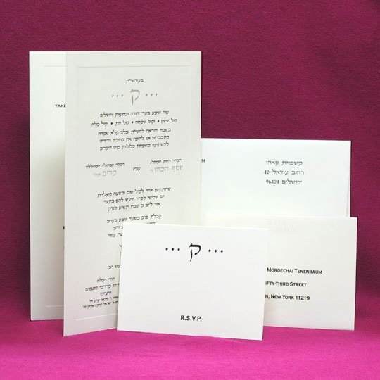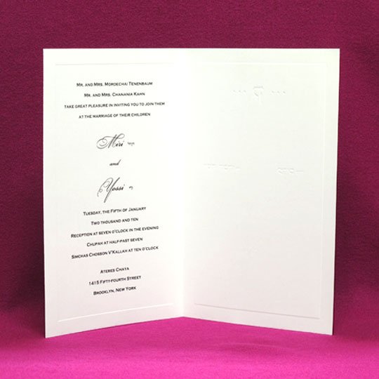 The wonderful feel of panel on high quality paper. Priced here for one color ink. Discounts available for large quantities. Jewish wedding invitations