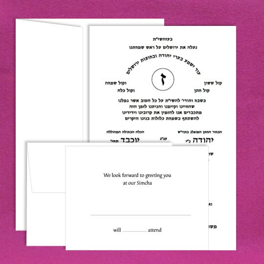 Flat Print! This round circle is simple and smart looking. It works perfectly with the rounded wording above it. Jewish wedding invitations