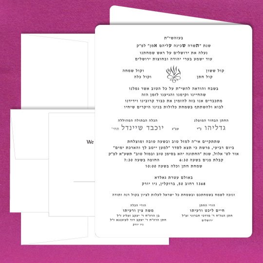The round edge adds grace and softness. This invitation comes with a pointed flap envelope. Jewish wedding invitations