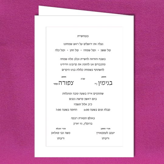 A truly magnificent invitation with the panel outside and inside. Also available with Panel only on cover. Jewish wedding invitations
