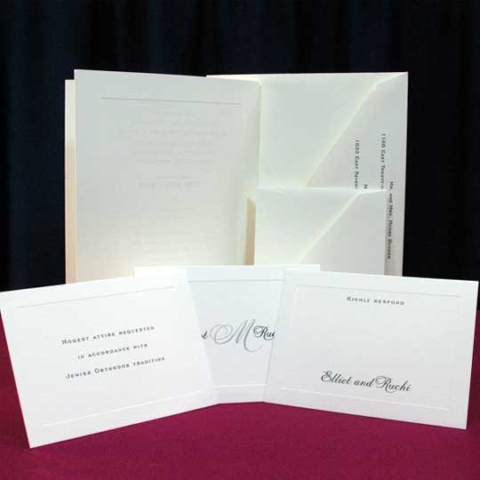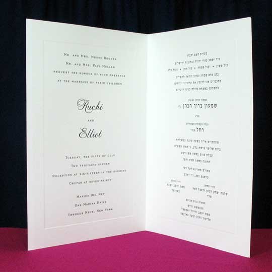 This invitation is popular for it’s excellent paper quality, full size, classic panel and elegant pointy envelope flaps. Jewish wedding invitations