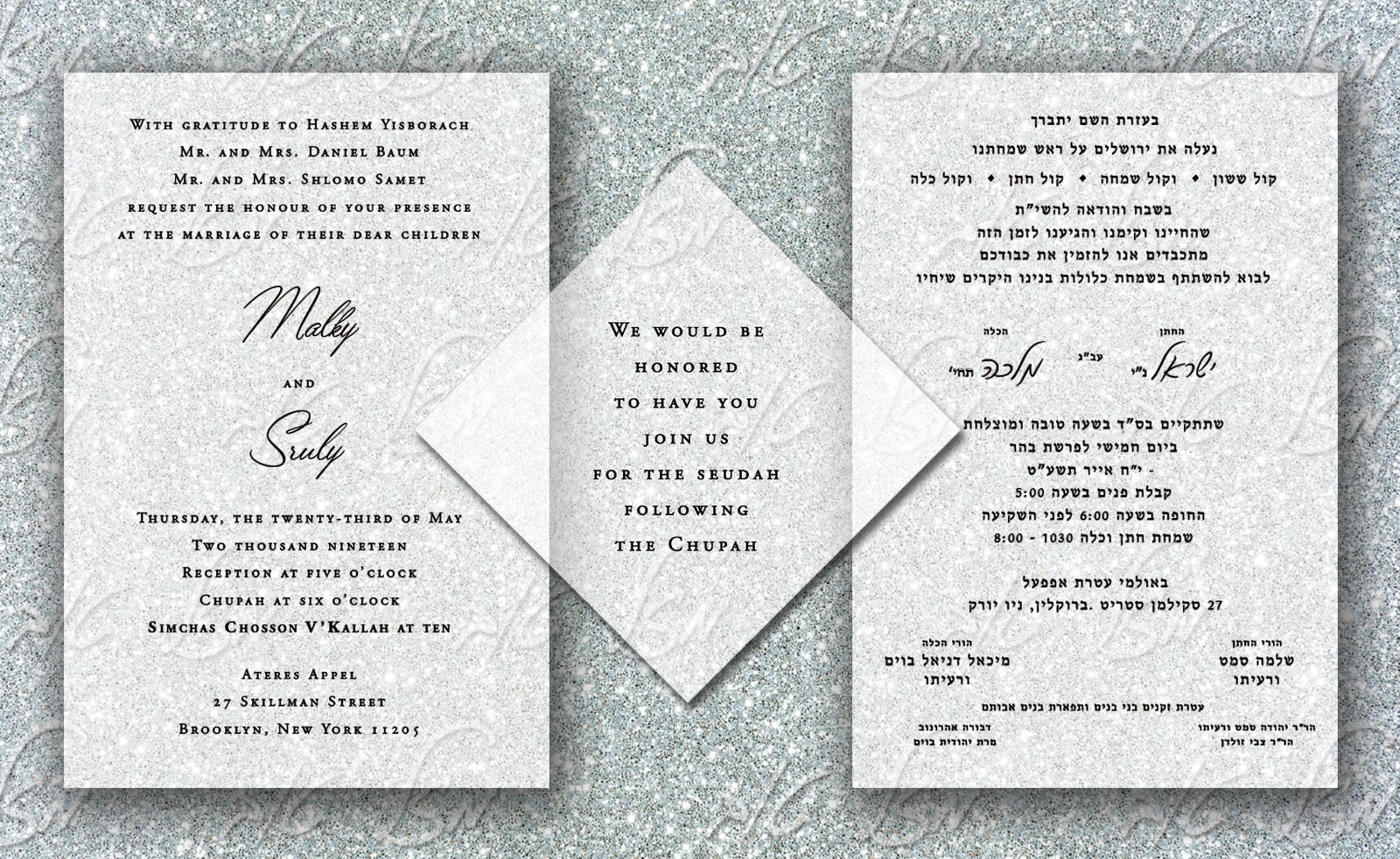 A soft look with the option of an additional card or cards with Mazel Tov faintly in the background.