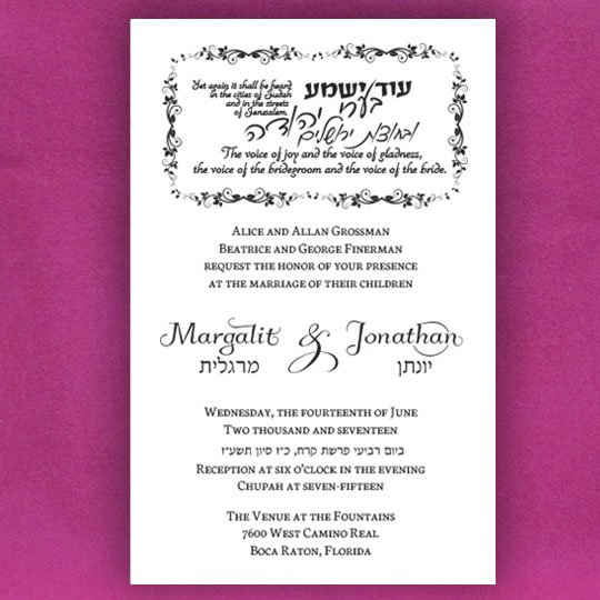 All the beauty of a Jewish wedding is incorporated in this all time meaningful verse beautifully captured here. Jewish wedding invitations