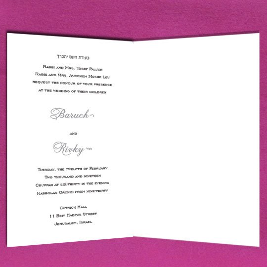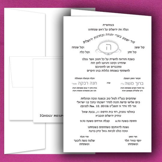 Jewish wedding invitations. Priced for one color. Call for two color pricing.