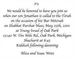 STANDARD BAR / BAT MITZVAH